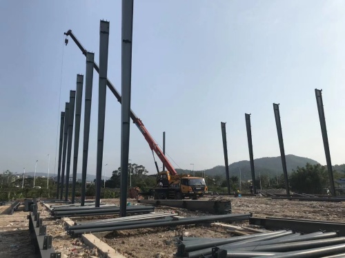 輕型鋼結(jié)構(gòu)廠房的門市鋼架的腹板可按有效寬度設(shè)計(jì),即允許部分腹板失穩(wěn),并可利用其屈曲后強(qiáng)度。豎向荷載通常是設(shè)計(jì)的控制荷載,但當(dāng)風(fēng)荷載較大或房屋較高時(shí),風(fēng)荷載的作用不應(yīng)忽視。在輕屋面門式剛架中,地震作用一般不起控制作用。支撐可做得較輕便。構(gòu)件單元可根據(jù)運(yùn)輸條件劃分,單元之間在現(xiàn)場(chǎng)用螺栓相連,安裝方便快速,土建施工量小。